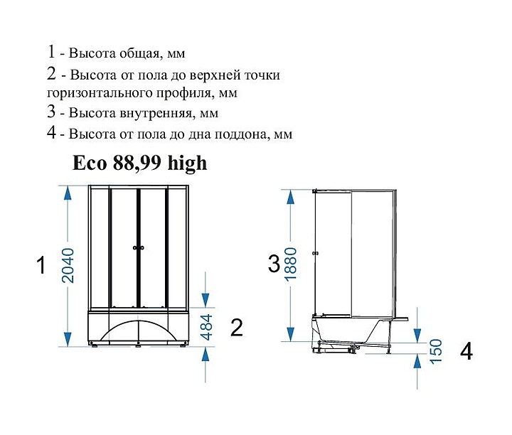 Душевая кабина без крыши Domani-Spa Eco Delight 88 high DS01EcD88HBT00 80х80 см