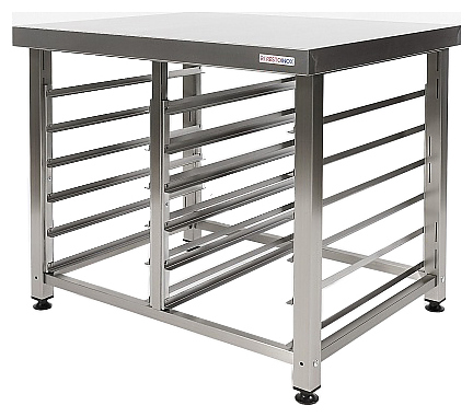 Подставка Restoinox ППКР-2-86/71 предназначена для размещения пароконвектоматов Rational ICOMBI PRO 6-1/1, ICOMBI PRO 10-1/1, ICOMBI CLASSIC 6-1/1, ICOMBI CLASSIC 10-1/1 на предприятиях общественного питания и торговли. Модель оснащена регулируемыми по высоте опорами. Разборный каркас выполнен из трубы 40х40 мм нержавеющей стали Aisi 430, направляющие и столешница - из нержавеющей стали Aisi 430. Дополнительные характеристики: