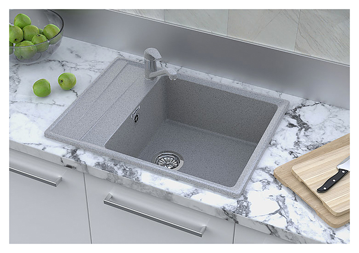 Кухонная мойка GranFest Level GF-LV-660L предназначена для установки в частных домах, квартирах, офисах, отелях, гостиницах и на различных предприятиях для мытья столовых принадлежностей, посуды, приборов, инвентаря и продуктов питания. Модель оснащена крылом для сушки посуды. Изделие выполнено из ммраморного композита, который устойчив к образованию пятен и воздействию высоких температур. Дополнительные характеристики:
