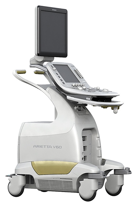 Аппарат УЗИ Hitachi Arietta V60используется в различных учреждениях здравоохранения для проведения ультразвуковой диагностики, то есть получения информации о расположении, форме, размере, структуре, кровоснабжении органов и тканей человека. Модель оснащена большим, цветным ЖК монитором, дополнительной сенсорной панелью, 3 портами для датчиков, и клавиатурой под панелью с подсветкой.