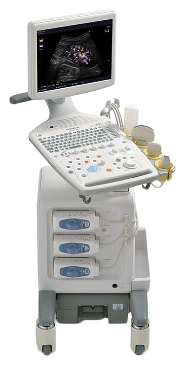 Аппарат УЗИ Hitachi F31 используется в различных учреждениях здравоохранения для проведения ультразвуковой диагностики, то есть получения информации о расположении, форме, размере, структуре, кровоснабжении органов и тканей человека. Модель оснащена цветным жидкокристаллическим монитором, 3 активными портами для датчиков, лотком для бумаг, 3-мя держателями-стаканами для датчиков, 1 универсальным держателем для геля или датчика, двухцветной подсветкой на панели управления, и USB-портом на передней панели для подключения внешних носителей. Особенности: