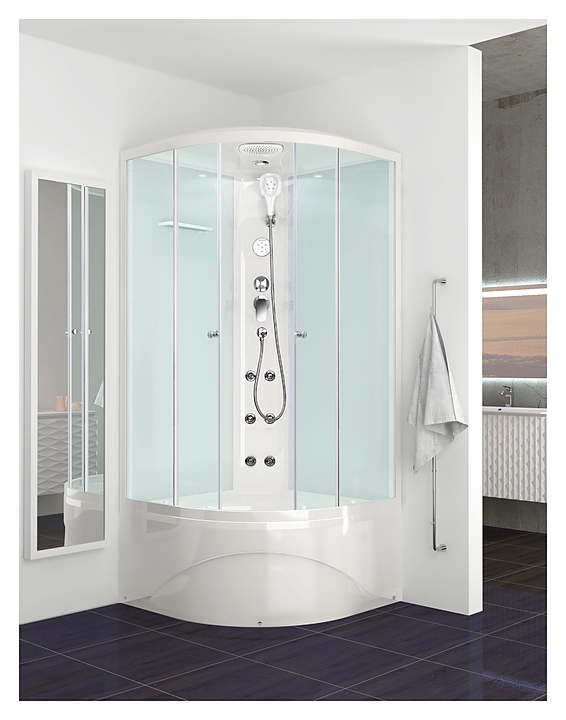 Душевая кабина с гидромассажем и блоком управления Domani-Spa Delight 110 high DS01D110HBT10 100х100 см предназначена для использования в ванных комнатах. Модель оснащена вертикальным гидромассажем, блоком управления, усиленными двойными верхними роликами и нижними роликами с пружиной. Наличие сиденья обеспечивает максимальный комфорт при приеме душа, а на полке можно размещать необходимые мыльные принадлежности. Изделие выполнено из акрила, устойчивого к механическим повреждениям, обладающего небольшим весом и повышенной шумоизоляцией. Особенности: