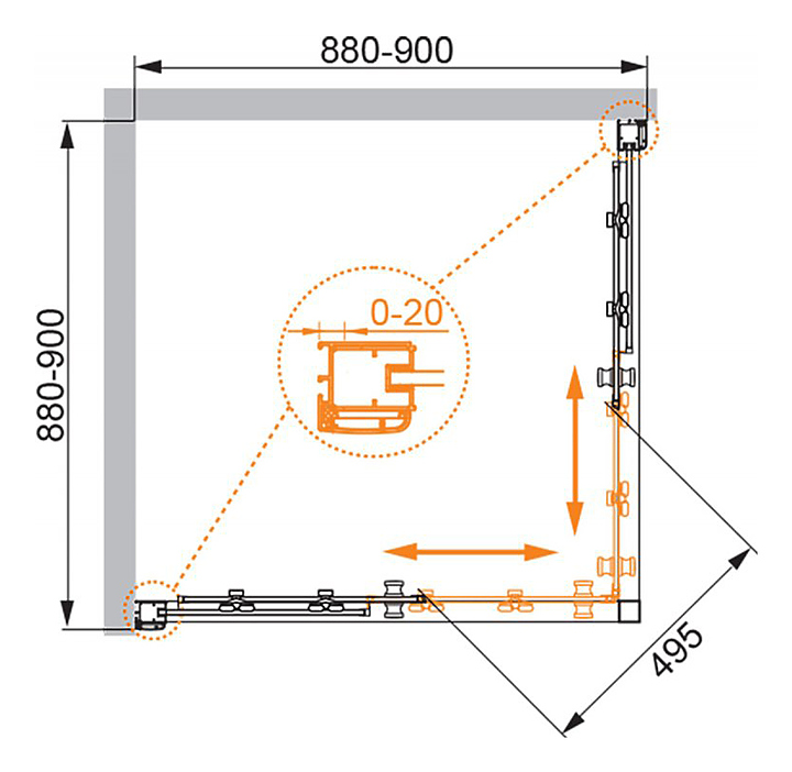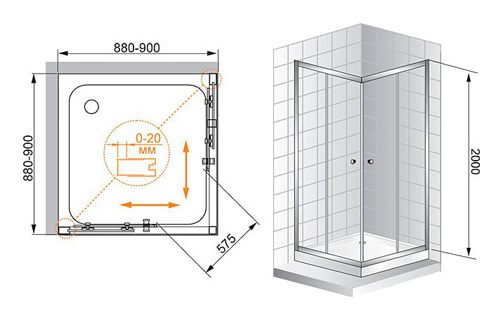 Уголок душевой CEZARES ANIMA-W-A-2-90-C-Cr-IV 90х90х200 см