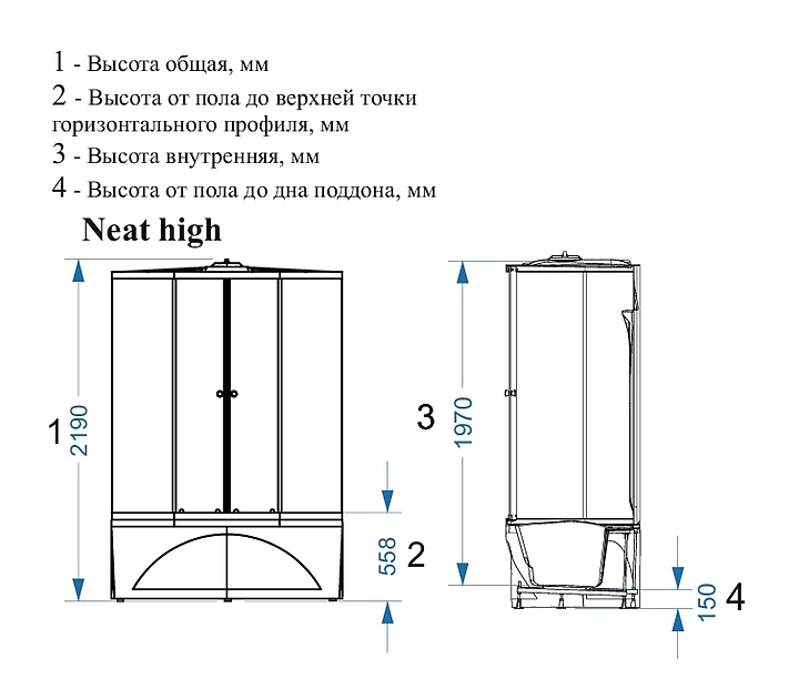 Душевая кабина с гидромассажем и блоком управления Domani-Spa Neat high DS01N158HPcCl10 150х80 см