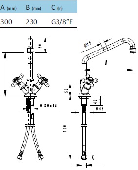 Смеситель Rubinetterie DEL FRIULI 00102302 предназначен для ежедневного использования и подачи воды на кухнях в пекарнях, столовых, кафе, ресторанах и на других предприятиях общественного питания. Смеситель устанавливается на моечную ванну или на стол-мойку. Характеристики: