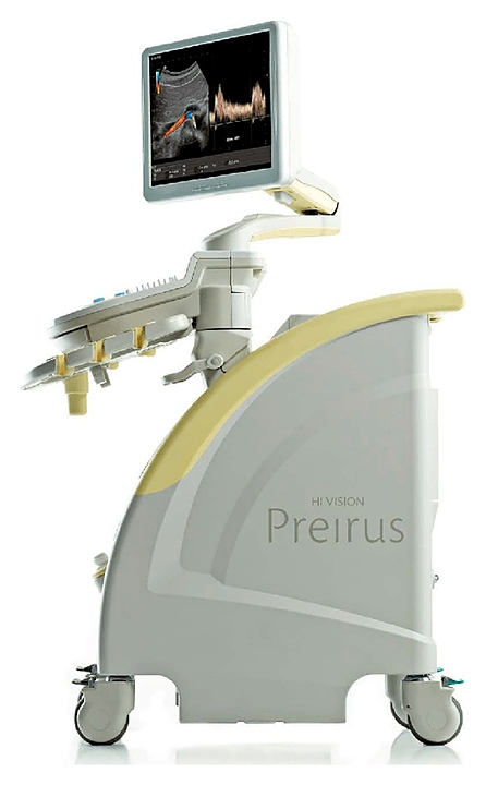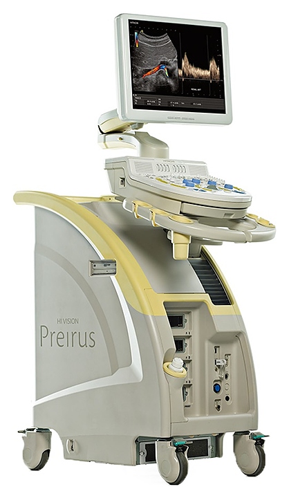 Аппарат УЗИ Hitachi HI Vision Preirus используется в различных учреждениях здравоохранения для проведения ультразвуковой диагностики, то есть получения информации о расположении, форме, размере, структуре, кровоснабжении органов и тканей человека. Модель оснащена большим, цветным монитором, разъёмами для датчиков, планшетным пультом дистанционного управления, встраиваемым блоком физиологических сигналов, программируемой ножной педалью управления, и встроенным подогревателем геля.