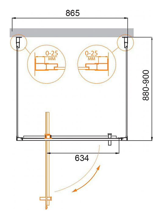 Уголок душевой CEZARES MOLVENO-BA2-90/90-C-Cr-IV 86,5х90х195 см