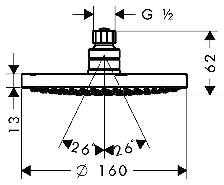 Верхний душ Hansgrohe Croma 160 27450000 благородаря дизайну и продуманным функциям доставляет необыкновенное наслаждение от принятия душа на высочайшем уровне. Его лаконичный, благородный дизайн, гармоничная форма и высококачественная поверхность заметно повышают ценность интерьера ванной комнаты. Модель имеет душевую головку круглой формы и образует впечатляюще большую зону принятия душа. Известковый налет на силиконовых форсунках с легкостью удаляется благодаря технологии QuickClean, достаточно слегка потереть и структура струи снова идеальна. Душ предусматривает монтаж на стену или потолок. С помощью шарнирного соединения верхний душ наклоняется в любом направлении в соответствии с индивидуальными пожеланиями. В комплект поставки входит верхний душ. Особенности: