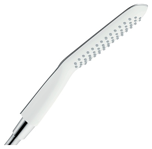 Ручной душ Hansgrohe PuraVida 120 Baton 1 iet 28558400 предназначен для использования в ванных комнатах. Модель имеет душевую головку прямоугольной формы, которая образует впечатляюще большую зону принятия душа. Известковый налет на силиконовых форсунках с легкостью удаляется благодаря технологии QuickClean, достаточно слегка потереть и структура струи снова идеальна. Особенности: