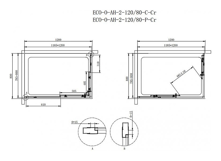 Уголок душевой CEZARES ECO-O-AH-2-120/80-C-Cr 120х80х190 см