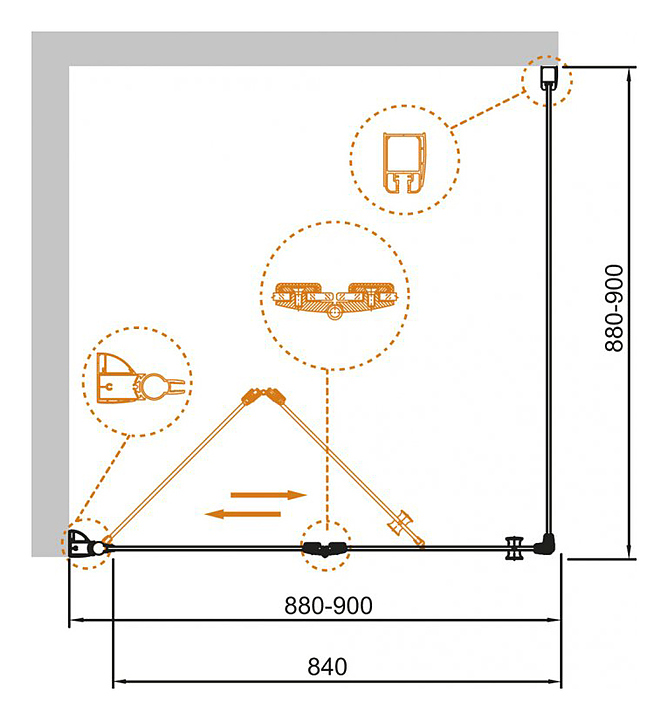 Уголок душевой CEZARES ECO-O-AS-1-90-C-Cr 90х90х195 см