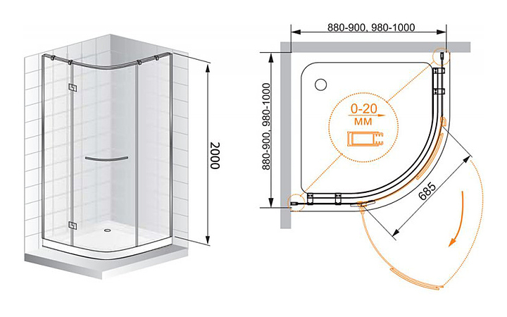 Уголок душевой CEZARES BERGAMO-W-R-1-90-ARCO-C-Cr-R-IV 90х90х200 см