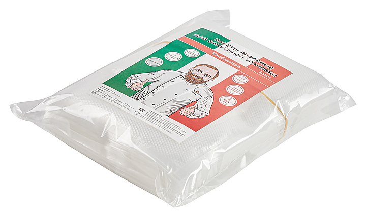Вакуумные пакеты VacGurman VG1255 используются совместно с камерными и бескамерными упаковщиками для упаковки продуктов на предприятиях общественного питания и торговли для последующего их хранения или приготовления по технологии Sous Vide. Изделия выполнены из двуслойного материала PA/PE (полиамид+полиэтилен). Особенности: