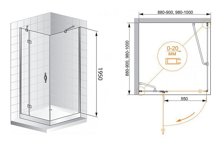 Уголок душевой CEZARES BERGAMO-W-A-1-90-C-Cr-R 90х90х195 см