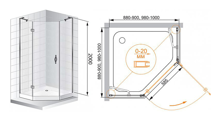 Уголок душевой CEZARES BERGAMO-W-P-1-100-C-Cr-R-IV 100х100х200 см