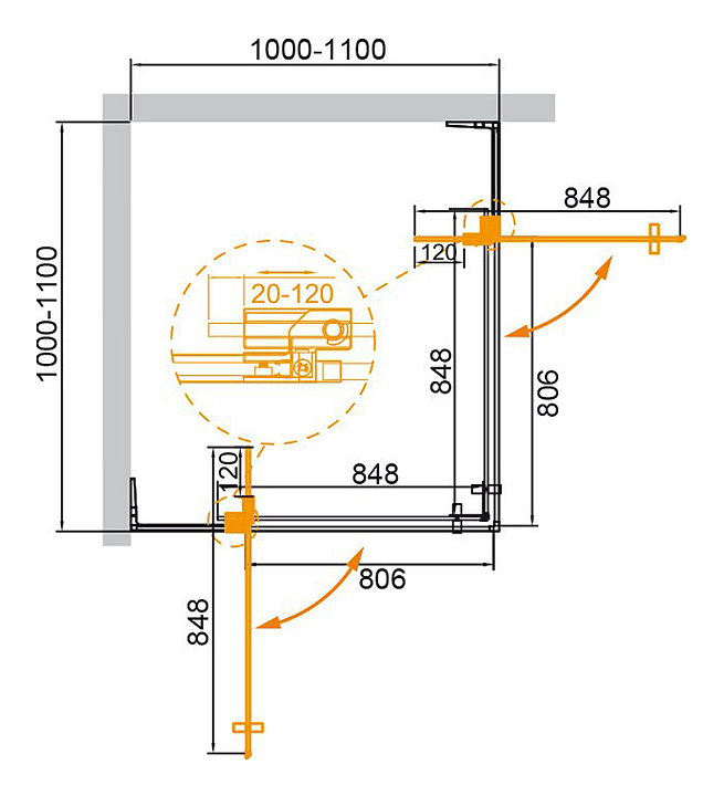 Уголок душевой CEZARES SLIDER-A-2-100/110-BR-Cr