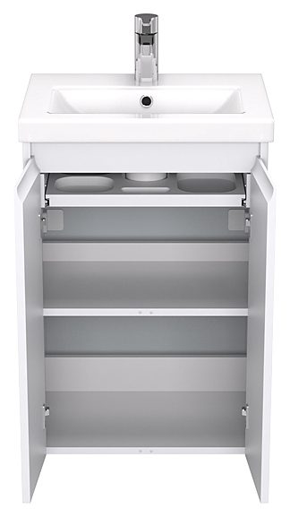 Тумба Velvex KLAUFS KLAUFS 50.2D tpKLA.50.2D-616.216 выполнена в современном стиле. Благодаря подвесной конструкции изделие не занимает много места и обеспечивает легкую уборку в ванной комнате. Модель оснащена распашными фасад-створками, за которыми находится выдвижной органайзер и полка, где можно хранить необходимые в ванной комнате принадлежности. Корпус изделия выполнен из высококачественной МДФ в матовой плёнке белого цвета, а фасады из МДФ в отделке HPL пластик глянцевый, что обеспечивает изделию привлекательный внешний вид, а также износостойкость и долговечность. В комплект поставки входят вкладная полка и комплект крепежа для крепления к стене. Раковина и смеситель в комплект поставки не входят и приобретаются отдельно. Особенности: