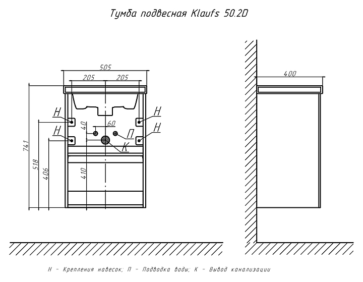 Тумба Velvex KLAUFS 50.2D tpKLA.50.2D-616.216 белая