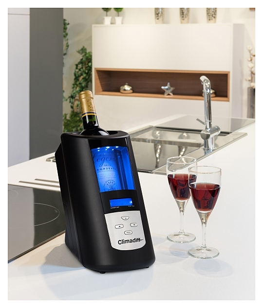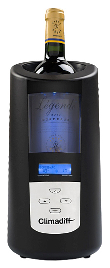 Охладитель бутылок Climadiff Echanson2 предназначен для быстрого охлаждения и поддержания заданной температуры бутылки вина или шампанского в ресторанах, специализированных магазинах, отелях, в частных домах или квартирах. Модель оснащена панелью управления с цифровым дисплеем и преобразователем питания 5А/12В. Особенности: