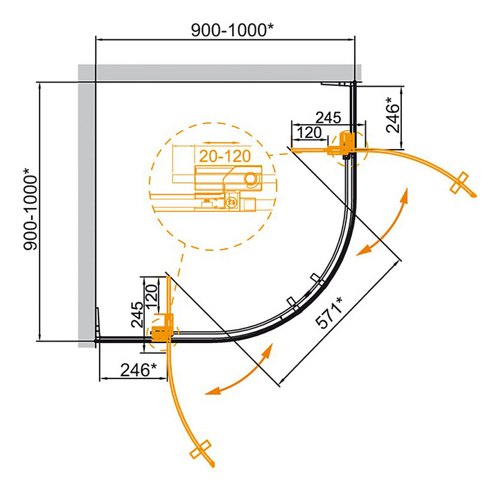 Душевой уголок CEZARES SLIDER-R-2-90/100-GRIGIO-Cr предназначен для использования в ванных комнатах. Благодаря угловой конструкции в форме четверти круга модель можно вписать даже в ванные комнаты небольшой площади. Кабина оснащена двумя распашными дверями. Полотно двери выполнено из прочного закаленного стекла, а профиль из анодированного алюминия, который отличается устойчивостью к коррозии, долговечностью и износостойкостью. Поддон в комплект поставки не входит и приобретается отдельно. Особенности: