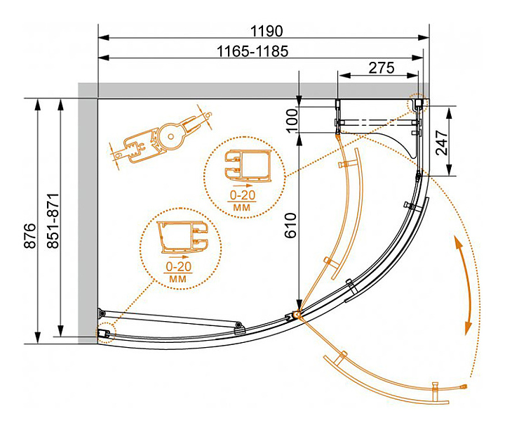 Душевой уголок CEZARES ELENA-W-RH-1-120/90-C-Cr-R предназначен для использования в ванных комнатах. Кабина оснащена одной распашной дверью. Полотно двери выполнено из прочного закаленного стекла, а профиль из анодированного алюминия, который отличается устойчивостью к коррозии, долговечностью и износостойкостью. В комплект поставки входят стеклянные полки с держателями. Поддон в комплект поставки не входит и приобретается отдельно. Особенности: