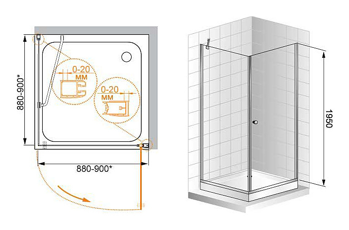 Уголок душевой CEZARES ELENA-W-A-1-90-P-Cr-R 90х90х195 см