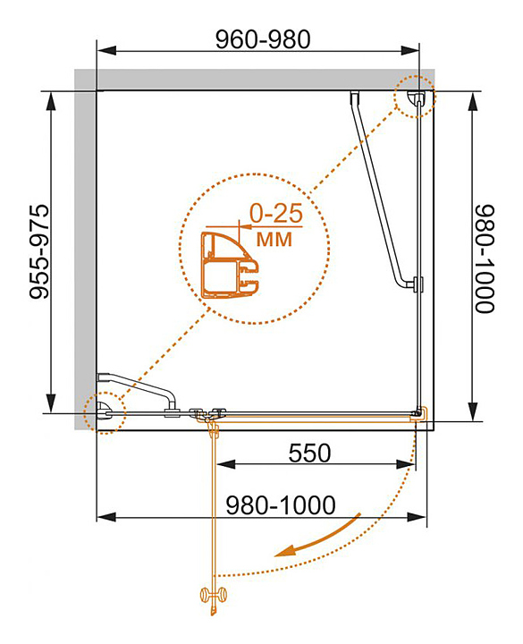Уголок душевой CEZARES VERONA-W-A-1-100-P-Cr-L 100х100х195 см