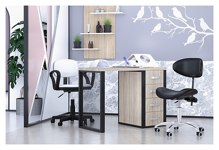 Маникюрный стол MERTZ FIX предназначен для обустройства рабочего пространства мастера маникюра в косметологических центрах, салонах красоты и домашних студиях ногтевого сервиса. Модель оснащена металлической опорой в виде сетки на прямоугольном каркасе и встроенной тумбой с четырьмя просторными выдвижными ящиками для хранения инструментов. Столешница и тумба изготовлены из высококачественной влагостойкой ЛДСП, устойчивой к механическим повреждениям, металлические элементы – из высокопрочной стали. Модель доступна в девяти цветовых исполнениях. Особенности: