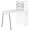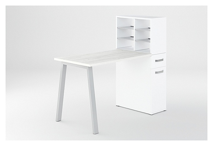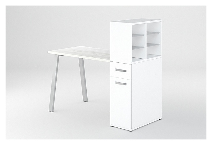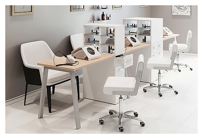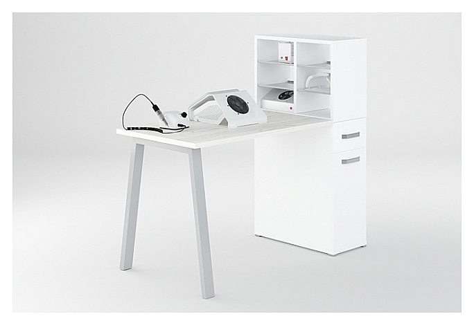 Маникюрный стол MERTZ PREFIX предназначен для обустройства рабочего пространства мастера маникюра в косметологических центрах, салонах красоты и домашних студиях ногтевого сервиса. Модель оснащена трапециевидной опорой и шкафом с четырьмя просторными выдвижными ящиками, совмещенным с настольной секцией с четырьмя полками для хранения оборудования. Столешница и шкаф изготовлены из высококачественной влагостойкой ЛДСП, устойчивой к механическим повреждениям, полки – из прочной тонкопрокатной нержавеющей стали. Модель доступна в девяти цветовых исполнениях Особенности:
