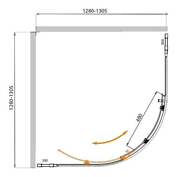 Уголок душевой CEZARES MOLVENO-R-11-100+30-C-Cr-IV 130х130х195 см