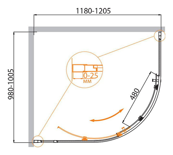 Уголок душевой CEZARES MOLVENO-RH-1-120/100-P-Cr 120х100х195 см