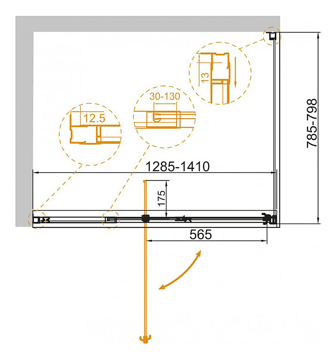Душевой уголок CEZARES VARIANTE-AH-1-130/140-80-C-Cr предназначен для использования в ванных комнатах. Кабина оснащена одной распашной дверью. Полотно двери выполнено из прочного закаленного стекла, а профиль из анодированного алюминия, который отличается устойчивостью к коррозии, долговечностью и износостойкостью. Поддон в комплект поставки не входит и приобретается отдельно. Особенности: