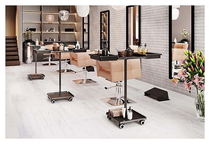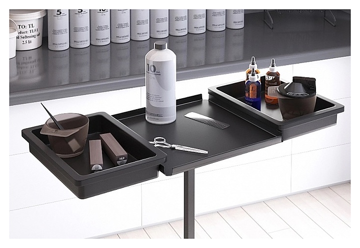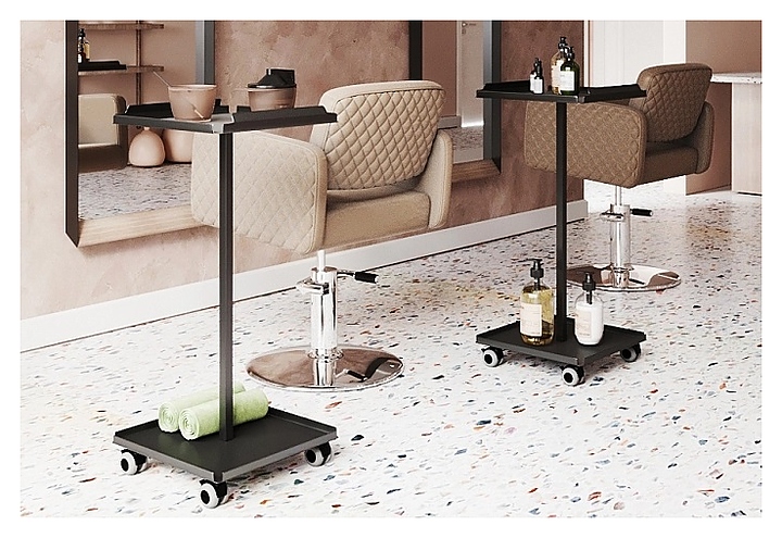 Парикмахерская тележка MERTZ Assist используется в парикмахерских, салонах красоты и тату салонах для размещения инструментов, аппаратов, средств и прочих аксессуаров, рационализации рабочего пространства мастером и создания комфортных условий для мастера и для клиента. Такое оборудование позволяет держать все необходимое под рукой и правильно организовать рабочее место. Модель оснащена 1 полкой, специальными бортиками, препятствующими падению размещенных на нем аксессуаров, и колесными опорами. Особенности: