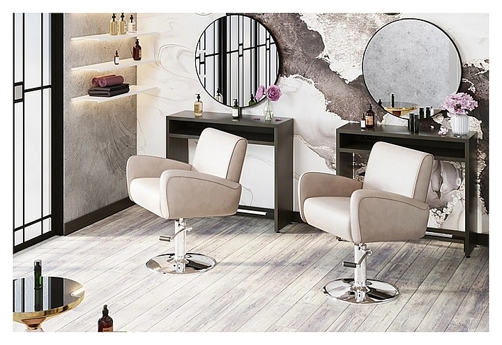 Парикмахерское кресло Manzano Tito используется в парикмахерских, барбершопах и салонах красоты для размещения клиента во время оказания ему услуг стрижки и окрашивания волос, и других парикмахерских услуг. Модель оснащена надежным, прочным, современным рычагом для регулировки высоты, и 4-мя миллиметровыми стальными пластинами в каркасе. Особенности: