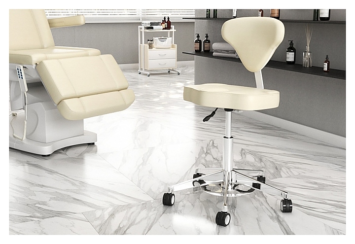 Стул мастера SunDream SD-6156F используется в косметологических центрах, салонах красоты, массажных кабинетах для расположения специалиста при проведении различных процедур, также подходит для домашнего бытового интерьера. Модель оснащена мягким круглым сиденьем, удобной спинкой, устойчивым основанием с пятилучевым колесным механизмом, рычагами регулировки. Каркас выполнен из прочной стали, основание – из полированного алюминия, обивка – из экокожи, наполнитель – поролон. Модель доступна в двух цветовых исполнениях. Особенности: