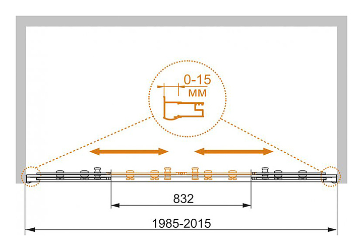 Дверь душевая CEZARES PRATICO-BF-2-200-P-Cr 200х185 см, в нишу, раздвижная