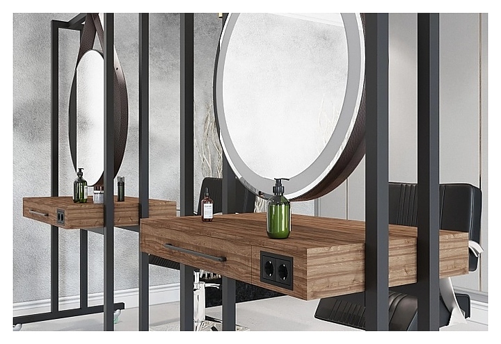 Парикмахерское зеркало Mertz Tarus Duo Edge используется в парикмахерских, барбершопах и салонах красоты для увеличения угла обзора мастера на свою работу во время оказания парикмахерских процедур и для удовлетворения желания клиента постоянно наблюдать за процессом оказываемых ему услуг. Модель для организации сразу 2-х рабочих мест. Модель оснащена профессиональными прорезиненными колёсами. Каркас рамы выполнен из металла, покрытого порошковой краской. Особенности: