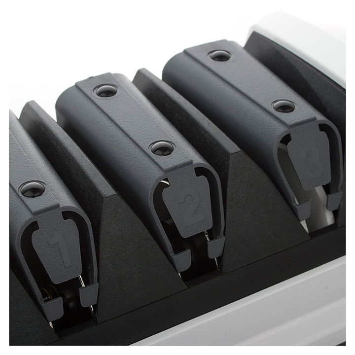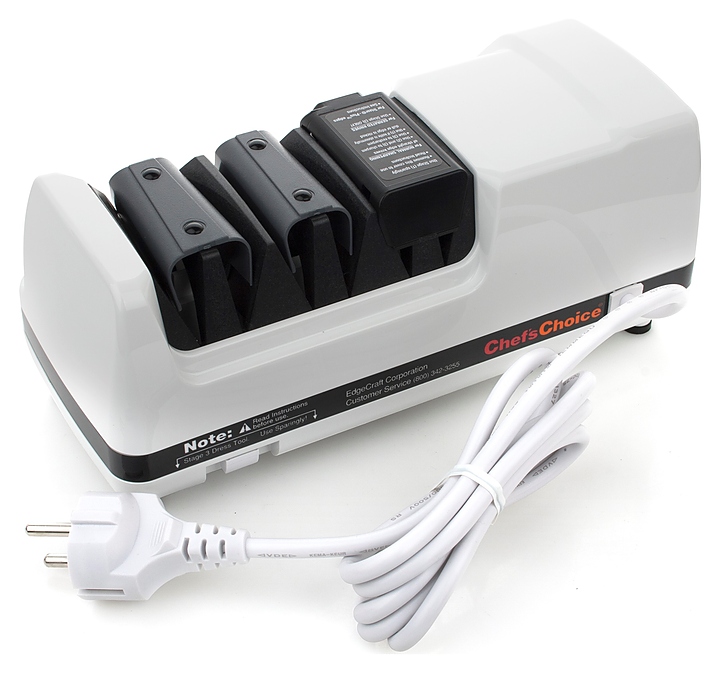 Электрическая точилка Chefs Choice CC120W предназначена для заточки ножей на предприятиях общественного питания и торговли, в частных домах и квартирах. Устройство работает с клинками, имеющими прямую и серрейторную режущую кромку. Направляющие и ножки выполнены из эластомера. Особенности: