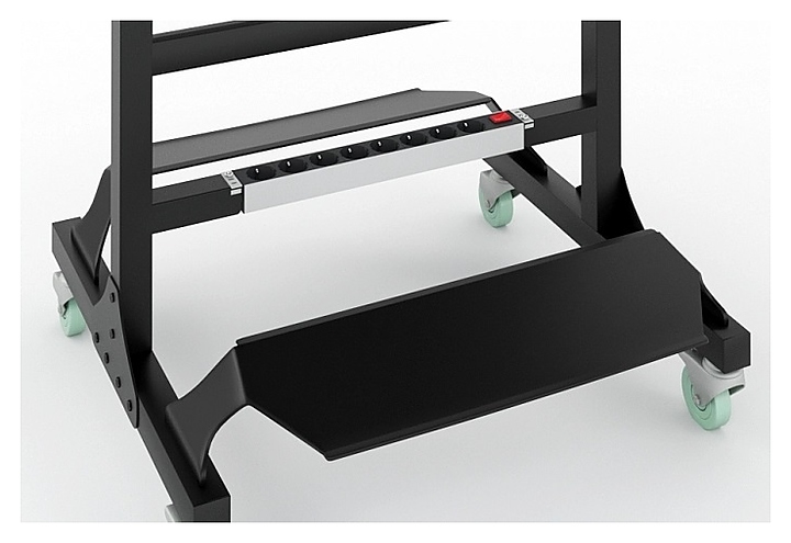 Парикмахерское зеркало Mertz Modus с 2-мя подножками и блоком розеток используется в парикмахерских, барбершопах и салонах красоты для увеличения угла обзора мастера на свою работу во время оказания парикмахерских процедур и для удовлетворения желания клиента постоянно наблюдать за процессом оказываемых ему услуг. Зеркало - один из центральных элементов парикмахерской, формирующих стиль заведения. Модель оснащена 2-мя широкими складными полками для инструментов, надежными прорезиненными колесами, обеспечивающими высокую мобильность. Каркас выполнен из прочного металлического профиля. Особенности: