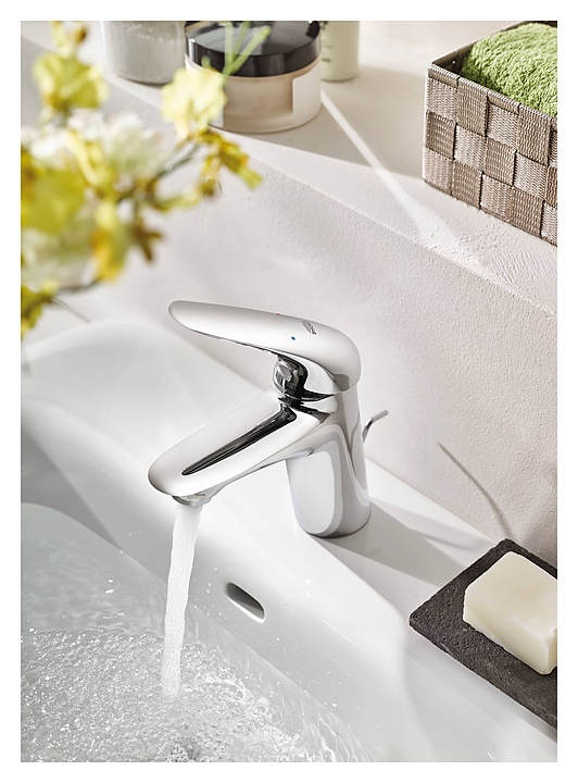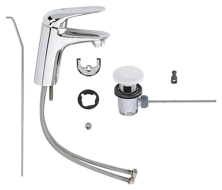 Смеситель для раковины Grohe Eurostyle 23707003 предназначен для использования в кухонных и ванных помещениях для подачи горячей и холодной воды. Модели коллекции Eurostyle отличаются рычагами необычной формы и интересным сочетанием простых изгибов и обтекаемых форм. Однорычажный тип управления позволяет очень быстро и плавно регулировать подачу воды одной рукой. Изделие выполнено из высококачественной латуни, отличающейся прочностью, долговечностью и устойчивостью к перепадам температур, а также имеет покрытие StarLight, устойчивое к царапинам и обеспечивающее блеск на много лет. Особенности: