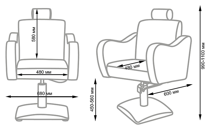 Кресло парикмахерское МЭДИСОН БРУКЛИН гидравлика хром, диск хром, комбинация № 61 и № 62
