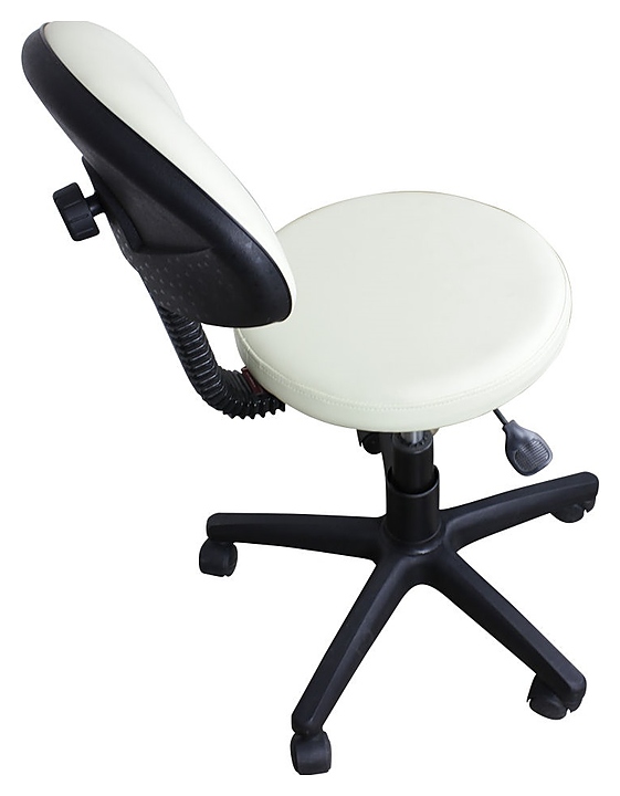 Стул мастера МЭДИСОН АСТЕК низкий со спинкой на пластиковом пятилучье используется в косметологических центрах, салонах красоты, массажных кабинетах для расположения специалиста при проведении различных процедур, а также подходит для домашнего бытового интерьера. Модель оснащена мягким круглым сиденьем, удобной спинкой, устойчивым основанием с пятилучевым колесным механизмом и рычагом регулировки. Обивка выполнена из качественной экокожи, каркас – из металла и многослойной фанеры, пятилучье и колеса – из прочного пластика, наполнитель – эластичный пенополиуретан. Особенности: