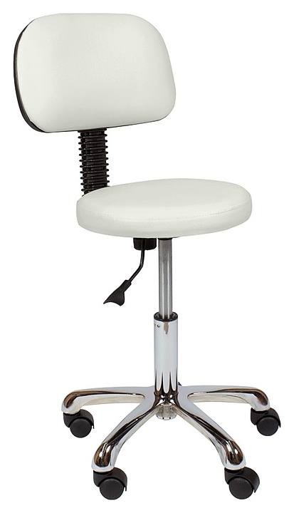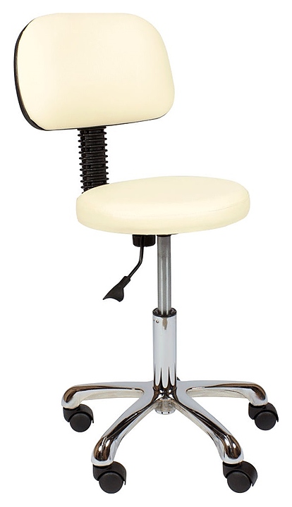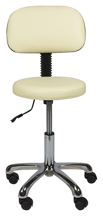 Стул мастера МЭДИСОН АСТЕК низкий со спинкой на хромированном пятилучье используется в косметологических центрах, салонах красоты, массажных кабинетах для расположения специалиста при проведении различных процедур, а также подходит для домашнего бытового интерьера. Модель оснащена мягким круглым сиденьем, удобной спинкой, устойчивым основанием с пятилучевым колесным механизмом и рычагом регулировки. Обивка выполнена из качественной экокожи, каркас – из металла и многослойной фанеры, пятилучье – из хромированного металла, колеса – из прочного пластика, наполнитель – эластичный пенополиуретан. Особенности: