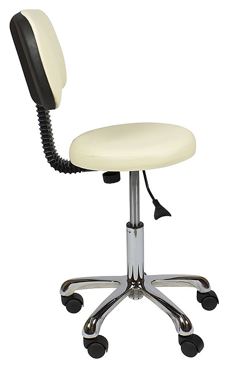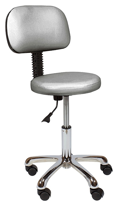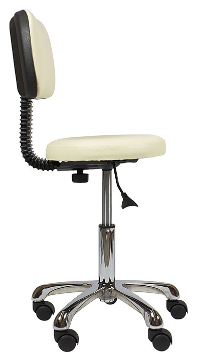 Стул мастера МЭДИСОН АСТЕК низкий со спинкой на хромированном пятилучье используется в косметологических центрах, салонах красоты, массажных кабинетах для расположения специалиста при проведении различных процедур, а также подходит для домашнего бытового интерьера. Модель оснащена мягким круглым сиденьем, удобной спинкой, устойчивым основанием с пятилучевым колесным механизмом и рычагом регулировки. Обивка выполнена из качественной экокожи, каркас – из металла и многослойной фанеры, пятилучье – из хромированного металла, колеса – из прочного пластика, наполнитель – эластичный пенополиуретан. Особенности: