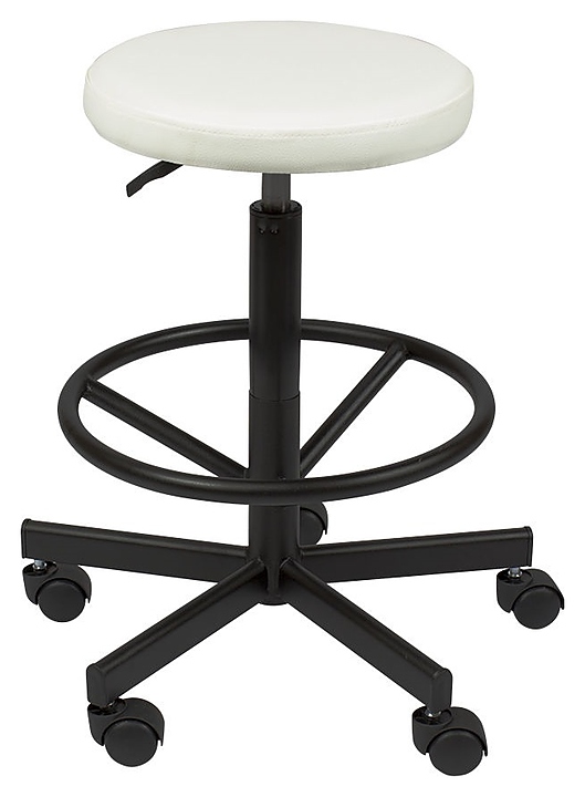 Стул мастера МЭДИСОН АСТЕК высокий с опорой для ног используется в косметологических центрах, салонах красоты, массажных кабинетах для расположения специалиста при проведении различных процедур, а также подходит для домашнего бытового интерьера. Модель оснащена мягким круглым сиденьем, устойчивым основанием на пятилучевом колесном механизме, кольцеобразной опорой для ног и рычагом регулировки. Обивка выполнена из качественной экокожи, каркас – из металла и многослойной фанеры, пятилучье и опора – из металла с антикоррозийным покрытием, колеса – из прочного пластика, наполнитель – эластичный пенополиуретан. Особенности: