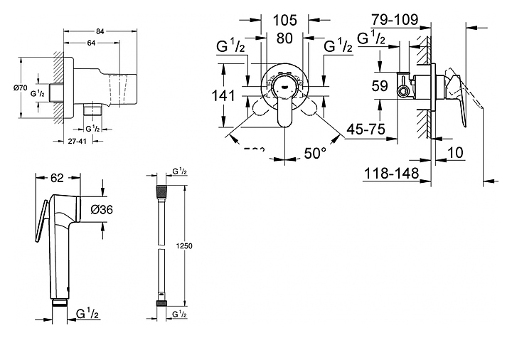Гигиенический душ Grohe BauEdge 124898