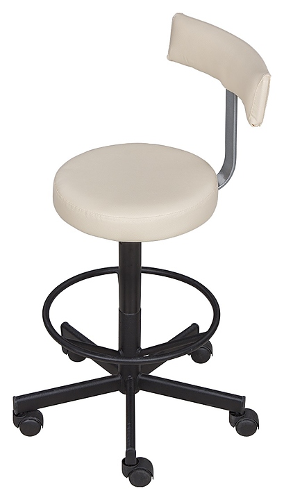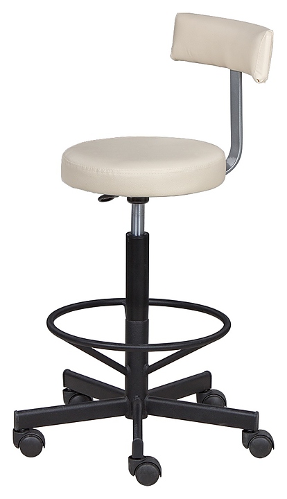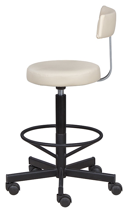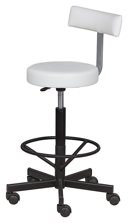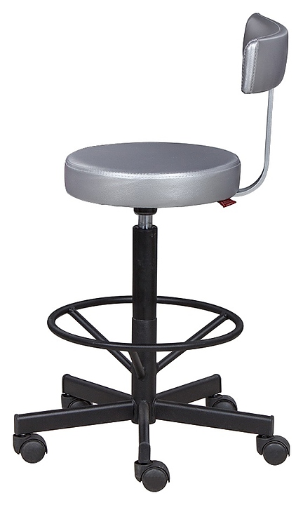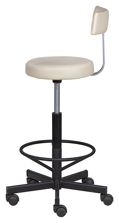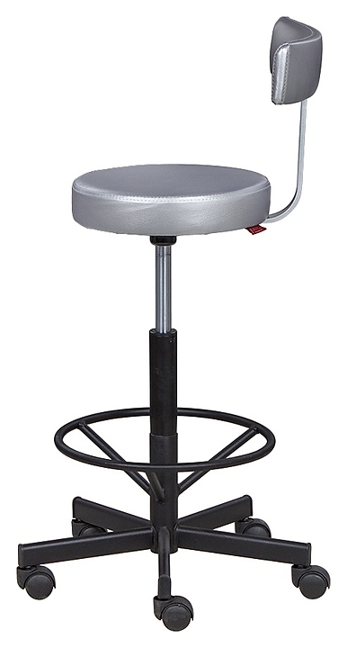 Стул мастера МЭДИСОН МД-9017 высокий с опорой для ног используется в косметологических центрах, салонах красоты, массажных кабинетах для расположения специалиста при проведении различных процедур, а также подходит для домашнего бытового интерьера. Модель оснащена мягкими удобными сиденьем и спинкой, устойчивым основанием с пятилучевым колесным механизмом, кольцеобразной опорой для ног и рычагом регулировки. Обивка выполнена из качественной экокожи, каркас – из металла и многослойной фанеры, пятилучье – из металла с антикоррозийным покрытием, колеса – из прочного пластика, наполнитель – эластичный пенополиуретан. Особенности: