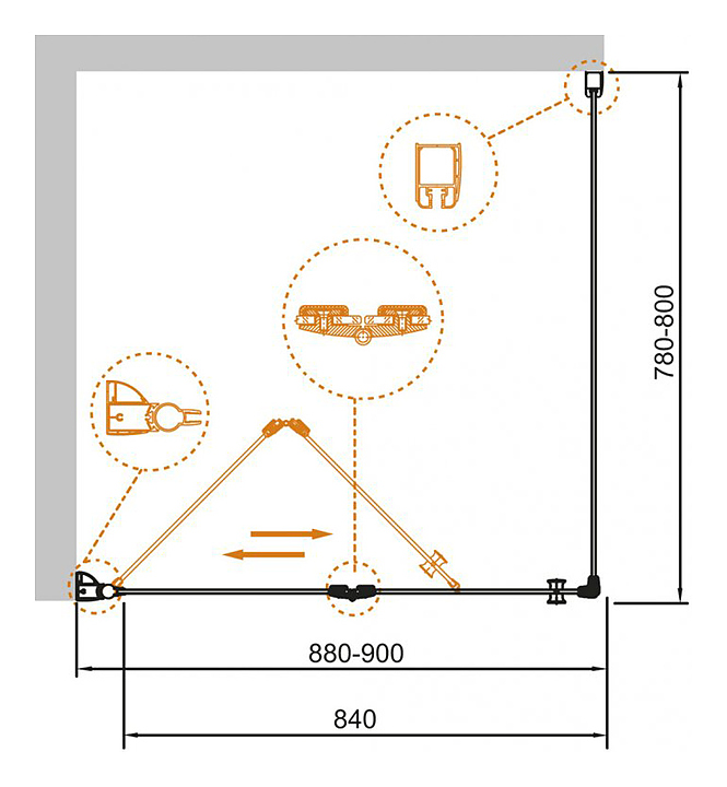 Уголок душевой CEZARES ECO-O-ASH-1-90/80-C-Cr 90х80х195 см