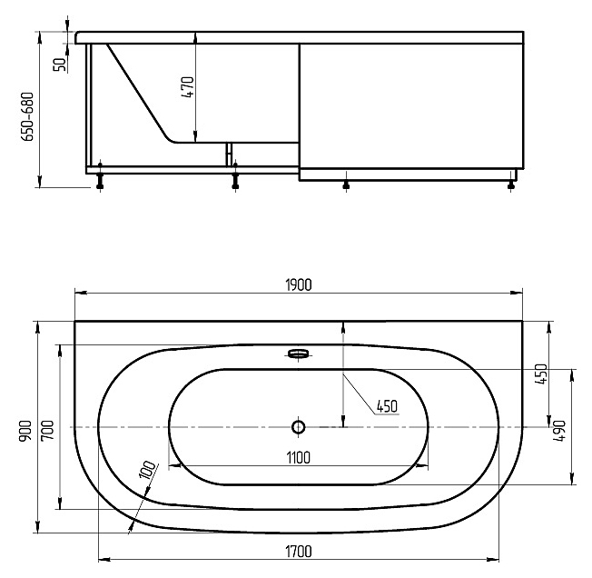 Ванна Aquatek Морфей MOR190-0000014 190х90 см, с фронтальным экраном, с боковыми экранами, акрил