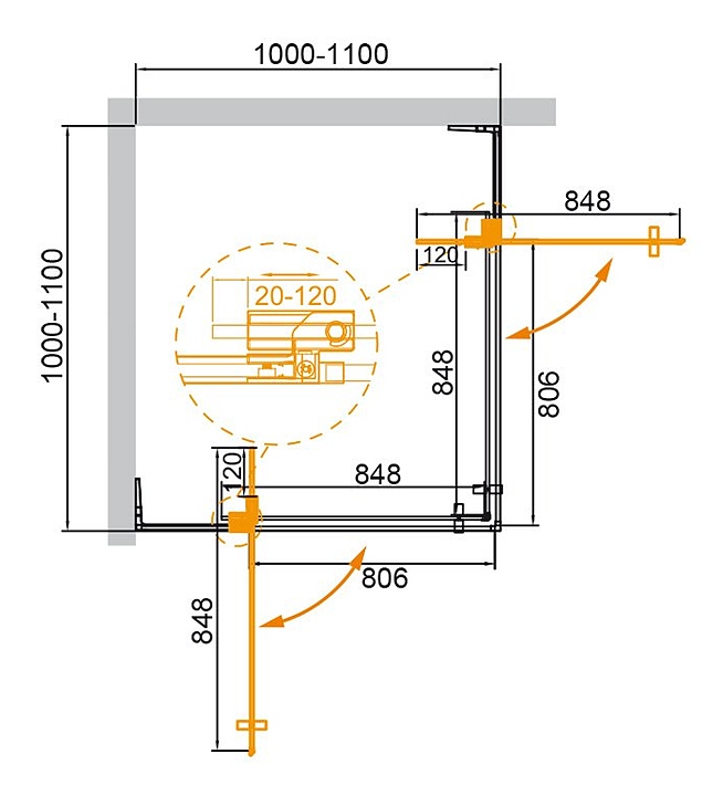 Уголок душевой CEZARES SLIDER-A-2-100/110-C-NERO